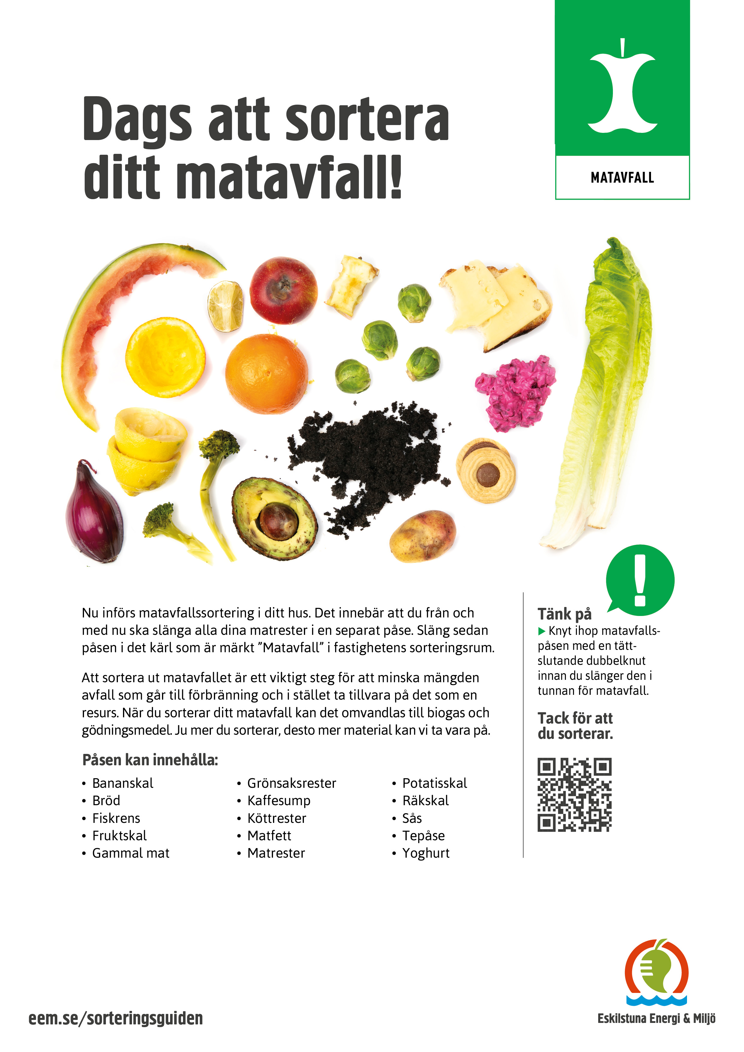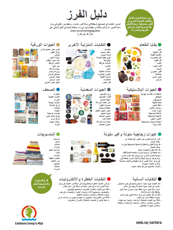 Vi hjälper dig att informera dina hyresgäster om hur de ska sortera i soprummet. Här hittar du informationsmaterial som du kan ladda ner, skriv ut och dela ut.