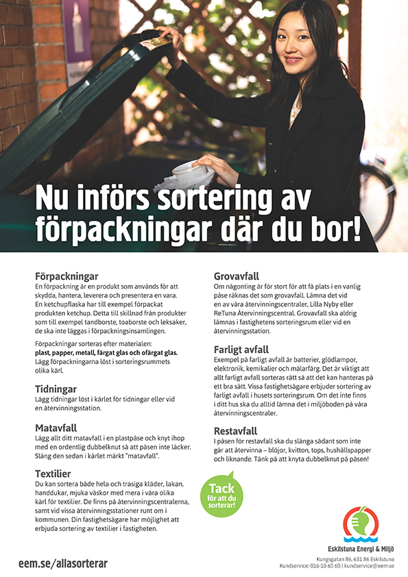 Tveka inte att höra av dig till oss om du behöver tryckta broschyrer eller någonting annan typ av information kring sortering. Vi hjälper dig att hitta lösningar.