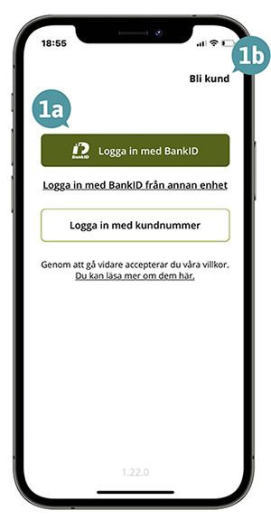 Börja med att installera appen i din mobil. Appen är gratis. Klicka på länken nedanför för att gå till din app-butik.